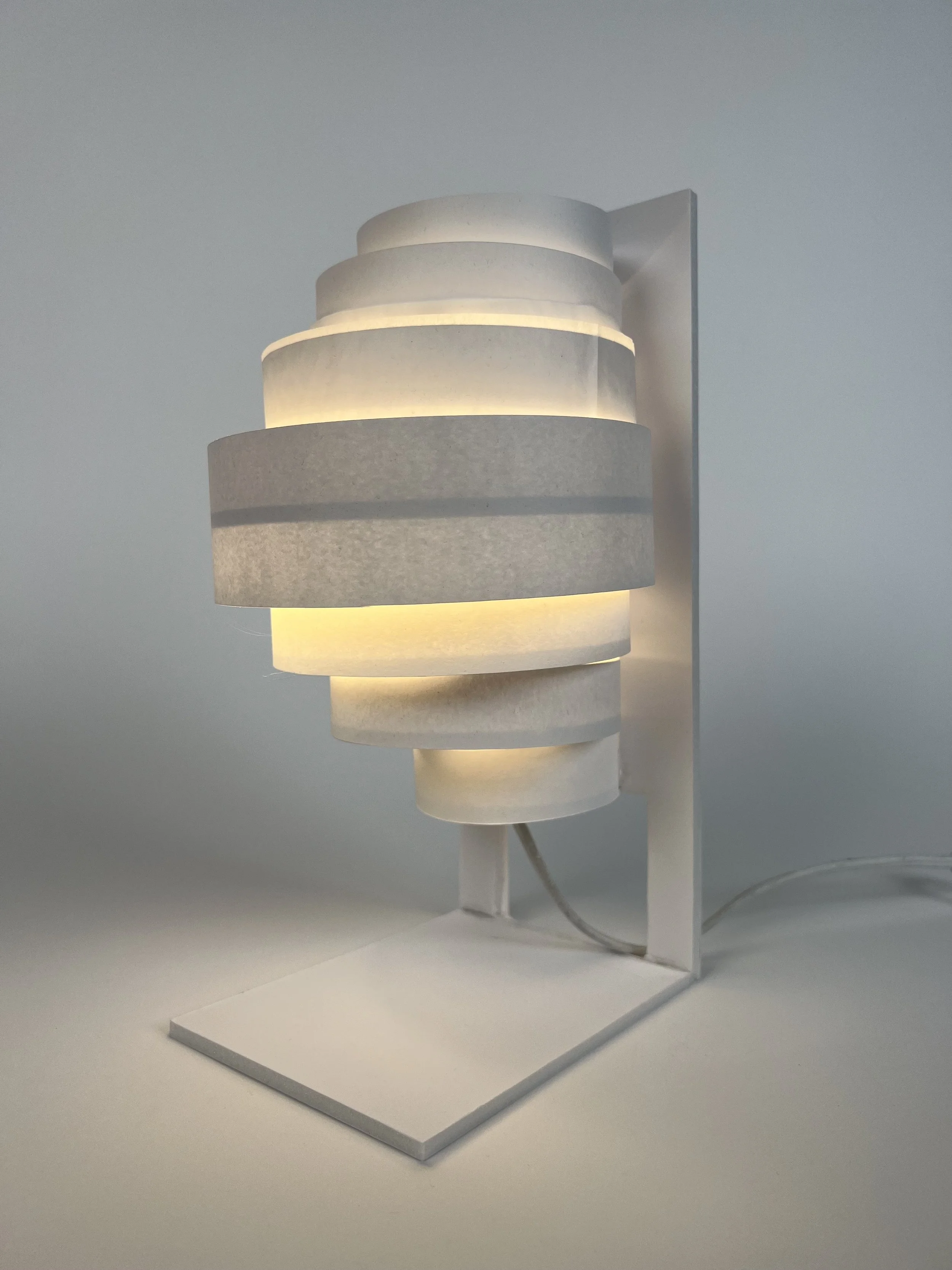 objective: design a cohesive collection of lamps—including a table lamp, pendant, and sconce—using only foam core, Bristol board, and the provided cord set.